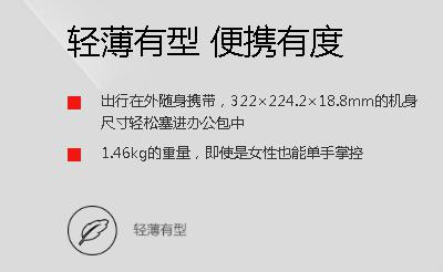 重量和尺寸 1.46kg,322x 224.2x18.8mm